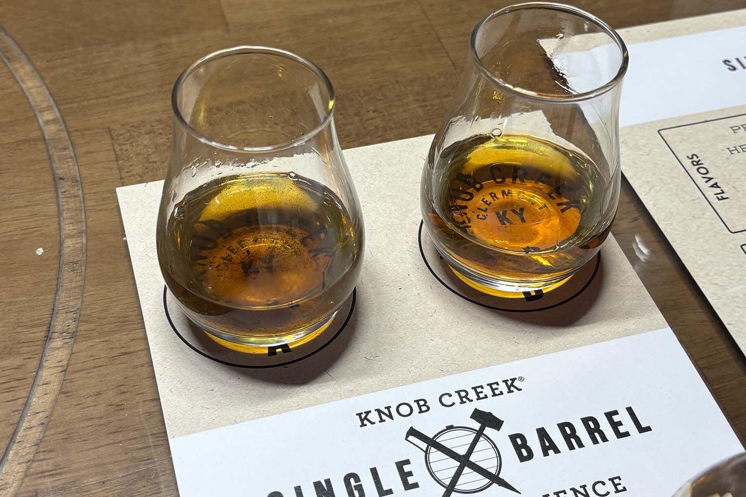 If you are ever part of a barrel-pick program, at Knob Creek or another distillery, here are a few suggestions to follow: Jump around your tasting board (aka don’t just drink and compare the samples in order). Drink water and, if you want, add a drop or two to your extremely high-ABV liquid. Smell something “familiar” (like your skin or clothing) between tastes to reset your senses. And decide if you’re going into the tasting blind — with no notes on proof, barrel location, etc. — or want to know all the details in advance.
